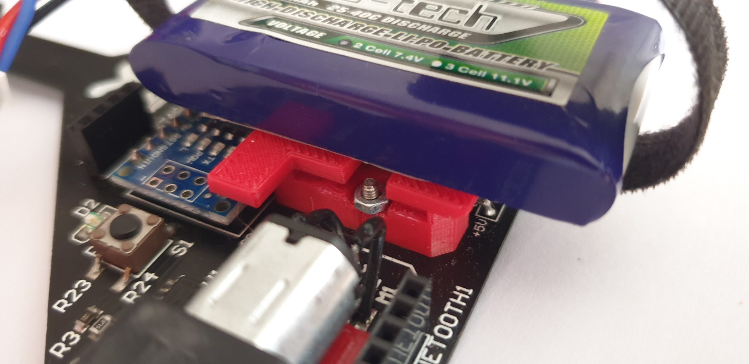 Este soporte ultra liviano es customizado para los velocistas y permite asegurar la batería y cargas para mayor estabilidad. Usado por Linebot.x.